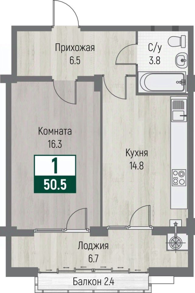 Общая площадь50,5 м2