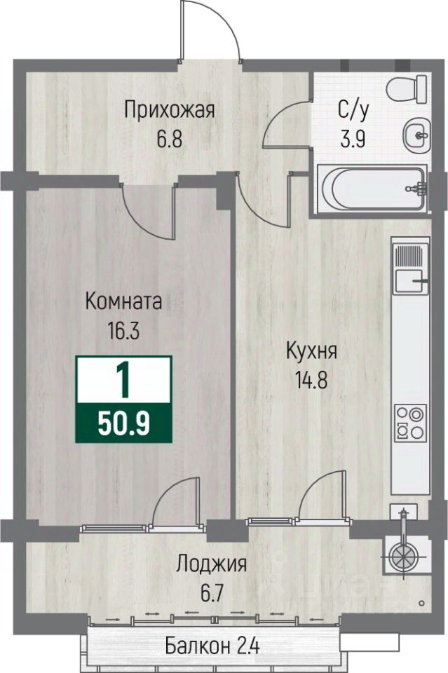 Общая площадь50,9 м2