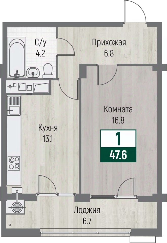 Общая площадь47,6 м2