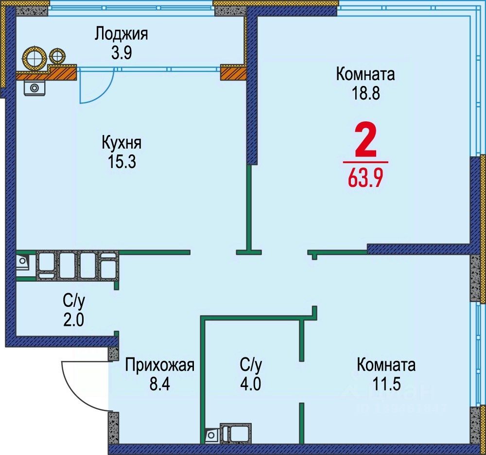 Общая площадь63,9 м2