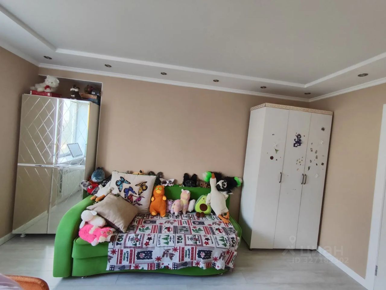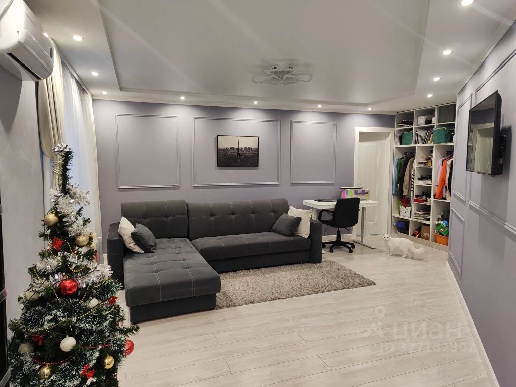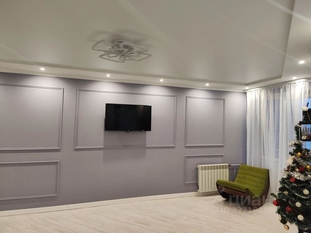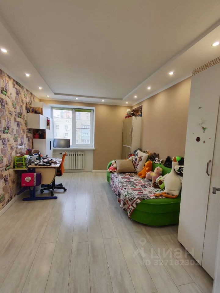 Детская комната 13,1 кв. м, светодиодная цветная подсветка потолка. Зал 22,4 кв. м, стены под покраску с молдингами, брльшой встроенный шкаф,2 окна, балкон с шикарным видом на город , кондиционер.