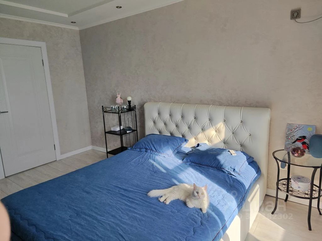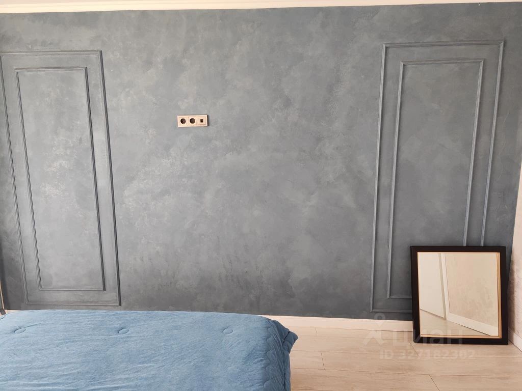 Спальня 11,5кв. м балкон с тёплым полом и панорамным остеклением, красивый вид на Эльбрус и город, декоративная штукатурка матовый шёлк с молдингами на стенах+ обои Victoria stenova, кондиционер. Окна выходят во двор, тихо.