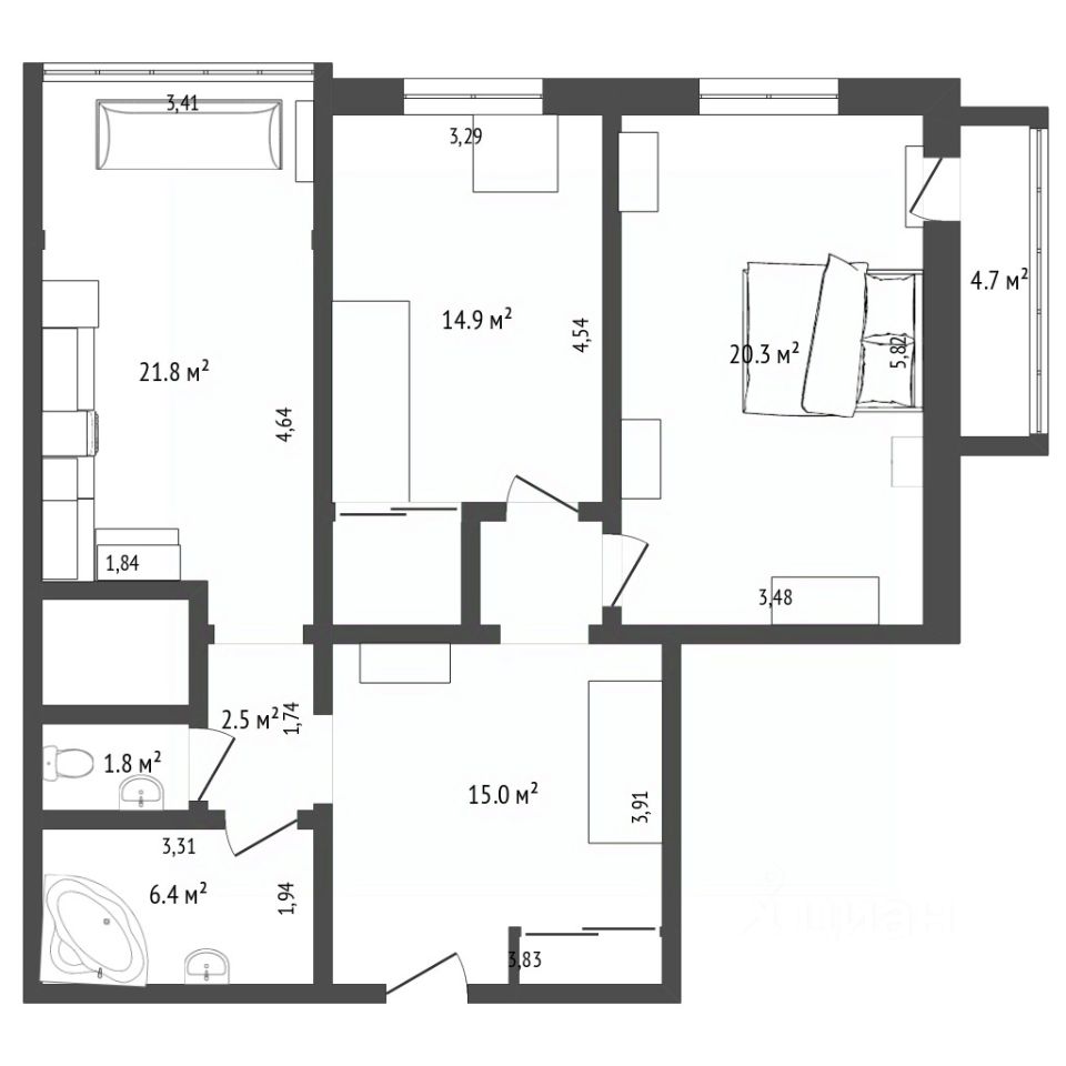 Большие и просторные комнаты, а так же в квартире имеется две кладовые, сделан свежий и качественный косметический ремонт.